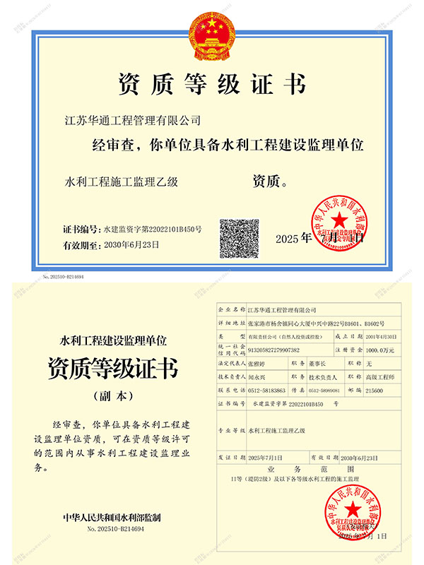 目前具有房屋建筑工程监理、市政公用工程监理、人防工程监理、造价咨询四个甲级资质;机电安装工程监理、电力工程监理、化工石油监理、工程招标代理、政府采购(货物)招标代理、水利工程施工监理(水利部)六个乙级资质以及建筑装饰装修工程专业承包二级资质、建筑装饰工程设计专项丙级资质。